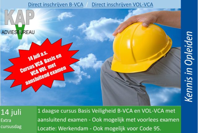Op 14 juli a.s. organiseren wij in Werkendam een 1-daagse cursus B-VCA en VOL-VCA met direct aansluitend examen.